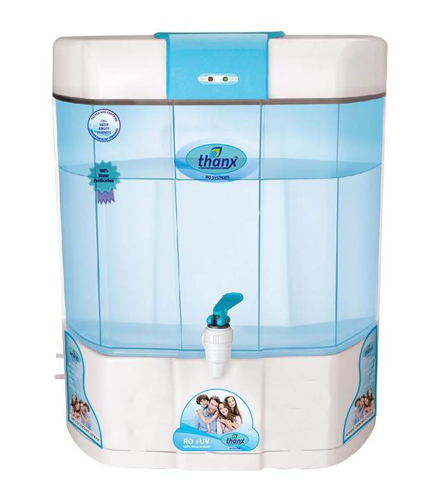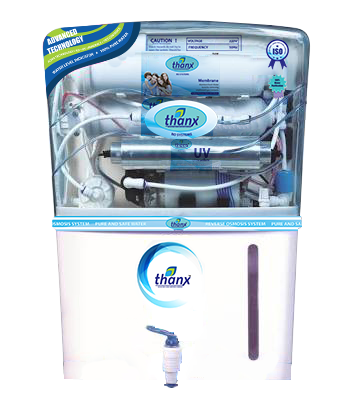 Thanx Misty Fresh - : 15 Liter Per Hour*. Storage Tank Capacity: 10 Liters. 10 stages Purification: 1) Pre-Candle, 2) Sediment, 3) Activated Carbon, 4) RO, 5) UF, 6) UV, 7) Antioxident, 8) TDS Minimiser, 9) Iron Remover, 10) Mineral Cartridge. RO Membrane: 75/80 GPD. UV Lamp Power: 11 Watt. Minimum Inlet Water Pressure: 0.3 kg/sq cm. Maximum Inlet water Pressure: 2 kg/sq cm. Input Voltage: 160-300V AC ( 50Hz). Operating Voltage: 24V DC. Input water Temperature: Min 5 Celsius & Max 50 Celsius. Net Weight: 9.5 kgs. Power rating: 40W