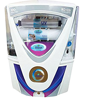Thanx AG-12 Water Purifier with Reverse Osmosis technology provides double stage purification of RO + UV, which removes even dissolved impurities such as chemicals and salts. The RO membrane maintains essential natural minerals, thereby providing 100% pure, safe & tasty drinking water, which is ideal for consumption.Purification Rate : 12-15 Liter Per Hour*. Storage Tank Capacity: 12 Liters